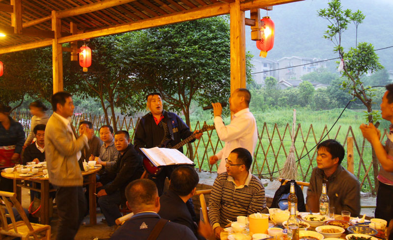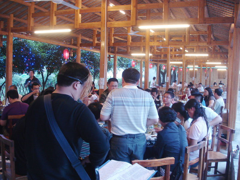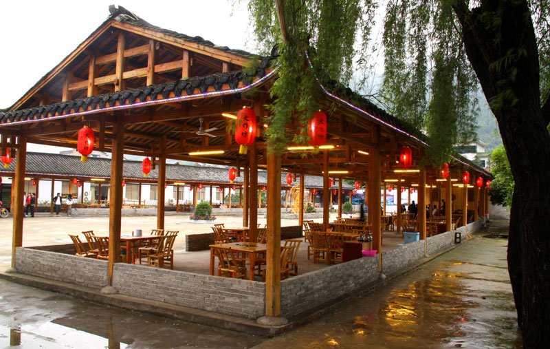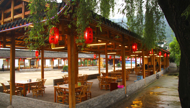 張家界武陵源大作坊美食城是一家集垂釣休閑,特色餐飲,夜市為一體的大型風味美食城!位于風景如畫的武陵源風景區(qū)區(qū)政府所在地,占地3000多平方米,可同時容納400多人就餐。這里也是景區(qū)內匯集土家美食,苗家美食的第一坊!美食城按純木四合院建造,內設酒作坊,豆腐作坊,臘味作坊,糍粑作坊,有垂釣區(qū),燒烤區(qū),菜品自助區(qū),客人廚藝展示區(qū),農產品展銷區(qū)等。酒作坊內聘請了民間煮酒大師現場煮酒,你有機會可以現場吃到熱乎乎的頭鍋酒,酒坊內有純米酒,包谷燒,高梁酒,有用野果泡制的各種果酒---燈籠酒,楊梅酒,彌猴桃酒等,更有特色的是把高梁酒放在正在生長的楠竹內,用竹內竹膜的香味把酒增香,十二天就把竹子砍下再放養(yǎng)三天就好了,客人要吃現場鋸竹筒酒吃!豆腐坊也是聘請民間老農現場用自制的石磨做豆腐,在這里你可以吃到真正有豆香味的原汁原味的石磨豆腐,和渣,菜豆腐,豆腐腦等豆制品!臘味作坊里有冬天用各種香料熏制的正宗湘西藏臘肉,臘豬頭肉,臘香腸,臘豬腳,各種臘制品臘野味等。糍粑坊每天在晚上人多用餐高峰時現場打滋粑,客人也可以自己參與打糍粑這個快樂的過程,想受過年時才有的熱鬧情景!在垂釣區(qū)里我們放養(yǎng)有很多野生魚類,有時間了你可以來這里休閑垂釣,得到的魚我們就會給你現場加工,有清沌的,紅燒的,青椒燜的,酸湯的,都很好吃哦。燒烤區(qū)里,我們高薪聘請了燒烤大師為你現場制做,你也可以自己動手,有烤羊排羊腿,各種串烤,烤全魚,烤全兔等,還有各種鐵板烤可以自己炒著吃!菜品自己選區(qū)里有各種山野菜,壇子菜,干菜,臘味等,有各種鮮活的魚類,河蛘,水魚,田螺,龍蝦等,有各種農家的土雞土鴨等,有各種鮮活的野味等你來享受美味呢!客人廚藝展示區(qū)里老板特設制地幾口大鍋, 很有特色的是, 你可以自己親自下廚, 酸甜苦辣任您自由調配 。 煮好了, 大家就圍著這“灶臺”合一的飯桌享受張家界的美食了。(張家界的三下鍋是很有特色的,是邊煮邊吃的, 只是這“三下鍋”是“大型三下鍋”而已。到張家界旅游,吃張家界的“三下鍋”是一種獨有的旅游體驗,到大作坊吃“大型三下鍋”,則更將會為你的旅程增添一份難得的回味。農產品展銷區(qū)里展示著當地或湘西地區(qū)最暢銷的農產品食品:正宗湘西鄉(xiāng)里臘肉,香腸,各種臘制品,洗車河霉豆腐,靈潔牌剁椒辣醬系列,菌油,正宗茶籽油,苗家酸湯,鄉(xiāng)里正宗葛粉,大壇湘西五糧液,竹簡敲敲酒,張家界茅巖霉茶,野生蜂蜜,高山葛粉,張家界第一山珍巖耳,葛根片等等! 武陵源大作坊美食城是武陵源景區(qū)規(guī)模最大,品種最多,環(huán)境最優(yōu)雅的休閑美食城。有各式小炒火鍋,岳陽特色燒烤系列,鐵板燒系列,鴨霸王系列,潮州特色砂鍋粥系列,涼菜醬菜系列,湘西地方特色小吃系列等。美食城整晚邀請著名的流浪歌手阿彪為你獻歌助興,并可同阿彪歌聲互動,在這里你可以放下一天的疲勞,拋開一身鎖事,度過美好的每一分鐘......武陵源夜市大作坊,是張家界旅游體驗的重要一站,它受到如此多的游客的熱捧,是因為,在這里能釋懷,是因為在這里,能體驗張家界旅游的文化內涵, 是因為在這里,能給你一個自由的空間......