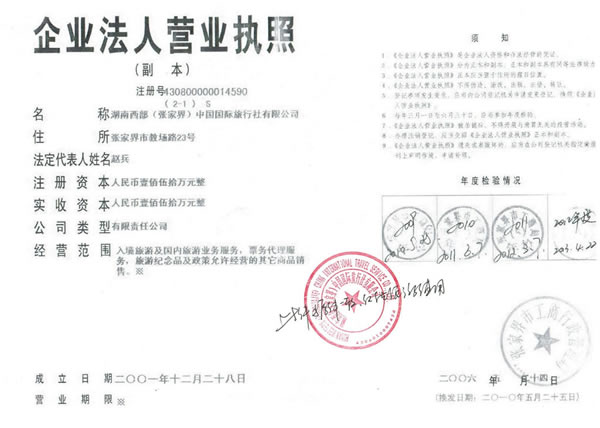湖南西部(張家界)中國(guó)國(guó)際旅行社有限公司
