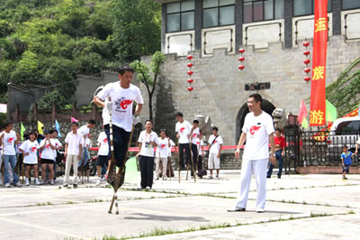 張家界高花燈亦稱高皇燈,是流行于永定沅古坪一帶富有民族特色的舞蹈。表演時(shí),12人至24人不等。配有鑼、鈸、嗩吶、鼓等樂器。每人手中拿一盞紙?jiān)鸁艋\,內(nèi)點(diǎn)蠟燭兩根,頂扎一木偶像,用五色紙剪成戲文故事如“八仙” 、“瓦崗寨”,“梁山英雄 ”之類。高花燈表演有一套程式,要求東起西落,進(jìn)一個(gè)“半邊月”,出一個(gè)“月團(tuán)圓”,舞個(gè)“太極圖”。亦可進(jìn)民房表演,叫“愿燈”,多為祝福、還愿或?yàn)槟臣蚁彩聹惾。打吆喝、打口哨則只能到戶外表演,叫“眾燈”,是讓大家看的。其形式又分民燈、戰(zhàn)燈。前者表演 古代先民的遷徙、繁衍、勞動(dòng)、生活;后者表演打仗破陣。隊(duì)形變化有“織籬笆”、滾柱頭”、“十八斗”、“螺螄轉(zhuǎn)頂”、“八卦陣”、“過天星”、“一字長蛇”等二十余種。如破“象棋盤陣”,主人插三十二根香,擺成棋盤陣,表演時(shí),主人舉紅傘,玩燈者舉黑傘,從河道進(jìn),將眾“子”一一吃掉(即踩香),這是斗智的競賽。只見燈火如流星般穿插舞蹈 ,旁邊配以龍燈互舞(配龍玩燈,是高花燈的主要特點(diǎn)之一),那激起的鑼鼓聲、吆喝聲、口哨聲,掀起有節(jié)奏的聲浪,熱烈而歡快。 張家界高花燈發(fā)祥于張家界市永定區(qū)沅古坪鎮(zhèn)等地區(qū),與沅古坪地區(qū)接壤的沅陵、桃源、慈利等周邊區(qū)縣也有少量玩高花燈的習(xí)慣。 高花燈的燈代表著光明幸福,12個(gè)燈表示12個(gè)月,月月平安無事。每年春節(jié),每個(gè)村寨都要操練一班高花燈,辭舊迎新。制作時(shí),藝人用竹篾和紙?jiān)?2或24個(gè)燈籠,在燈籠下加上一個(gè)長柄燈托,并在燈籠上扎上五顏六色的“故事”,如“八仙”、“耿氏送子”等。夜晚,在燈籠里點(diǎn)上木油臘燭,一人舉一個(gè)燈籠,邊舞邊組成多種隊(duì)形。一眼望去,流光閃爍,尤如銀河戲舞。 張家界高花燈不但為本鄉(xiāng)本土的觀眾所喜愛,而且受到海內(nèi)外朋友及國際友人的高度贊賞。因?yàn)樗侵袊爬系拿耖g舞蹈代表,它以自成體系的記譜方法,延繼著中國舞蹈的血脈,以其悠久的舞蹈歷史和多元文化特征,被舞蹈界認(rèn)為是“中國舞蹈歷史上的活化石”,極具學(xué)術(shù)研究價(jià)值和很高的審美價(jià)值。已列入全省第一批非物質(zhì)文化遺產(chǎn)保護(hù)名錄。 高花燈相傳起源于東漢章帝初年,時(shí)“ 中蠻”覃兒健在澧水中下游舉義反漢,與漢軍“戰(zhàn)于洪下”(相傳為今大庸紅土坪,待考),洪下“蠻人”用火 把跳舞為義軍吶喊助戰(zhàn),終因漢軍勢眾,覃兒健與義軍全部戰(zhàn)死(至今留下懸鼓坪、御甲埡、扎營山、烽火臺(tái)等古戰(zhàn)場遺跡)。以后,當(dāng)?shù)匦U人每年都必在過 后年(從正月初一至元宵節(jié))打火把集會(huì)跳舞, 栽“ 陽樁”(土話栽跟頭),表示對“洪下之戰(zhàn)”的紀(jì)念 。久而久之,火把進(jìn)化成燈籠和扎人物事故,表演也 有一定規(guī)矩。至今,這種舞蹈藝術(shù)還保留著古老、原始、粗獷、豪放、悲壯的特色。 |