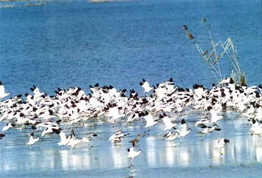 | 東洞庭湖是一個大湖泊型寬闊河道,它承納長江中上游和湖南的湘、資、沅、澧4條江河水量。湖泊的周圍是廣闊的沼澤和平原。 東洞庭湖是洞庭湖湖系中最大的湖泊,年平均過湖水量達3126億立方米。常年湖容量178億立方米,水深4-22m,最大水位落差為17。76m,ph6.8-8.6。它的地貌呈溝港縱橫的濕地景觀。土壤為湖沼土和河沼土。年平均氣溫為17℃,湖水丹頂鶴年平均溫度17.5℃,總降水量1200-1330mm,無霜期258-275天 該湖有豐富的沉水、浮水和挺水植物。記錄到131種水生植物,隸屬40科,75屬。常見的沉水植物包括苔草、黑藻、浮水植物有蓮、芡和浮萍;挺水植物有水燭和蘆葦?shù)。濕地周圍是稻田和其他農(nóng)作物。