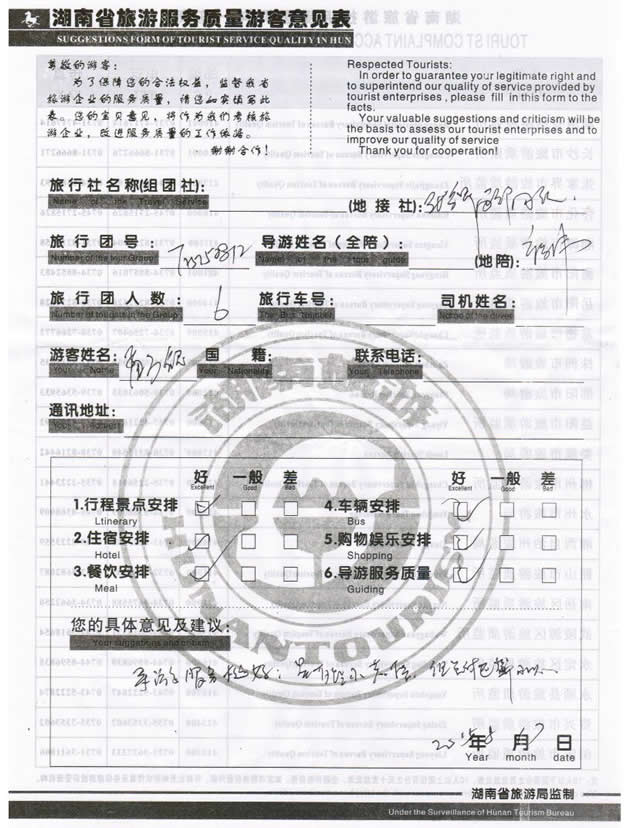 現(xiàn)在位置:首頁 -> 西部國旅->旅游質(zhì)量反饋 -> 2015-8-14 山西孟先生一行6位貴賓 天門山、張家界、袁家界、鳳凰四日游