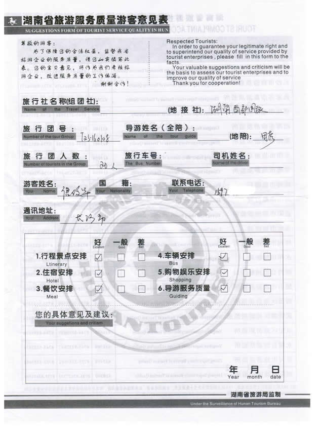 1月份,長(zhǎng)沙舒錦一行21位貴賓與湖南西部(張家界)中國(guó)國(guó)際旅行社工作人員——張群取得聯(lián)系,經(jīng)過(guò)商談,雙方達(dá)成協(xié)議并簽訂旅游合同,于1月8日抵達(dá)張家界,開始張家界之旅。此次行程是由我社優(yōu)秀導(dǎo)游——田杉負(fù)責(zé)旅游接待工作,田導(dǎo)在旅游過(guò)程中講解詳細(xì),客人也很滿意。同時(shí)也感謝長(zhǎng)沙舒錦一行貴賓選擇湖南西部(張家界)中國(guó)國(guó)際旅行社,以及您對(duì)湖南西部國(guó)旅的信任與支持。我們會(huì)繼續(xù)努力,做好旅游接待工作。期待下一次與您的合作,祝您愉快!