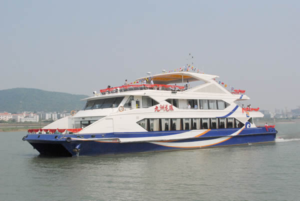 九洲龍?bào)J豪華游船船長42米,寬12米,擁有280個(gè)客位,游輪采用了國際先進(jìn)的造船技術(shù),流線型的外觀設(shè)計(jì)、造型典雅時(shí)尚。船身共分為3層,可滿足游客餐飲、觀光、娛樂、會務(wù)等多種需求。
