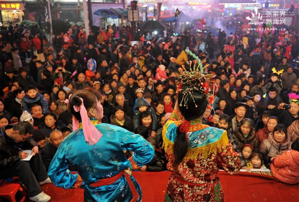 五是“冬游張家界 元宵狂歡節(jié)”活動(dòng)。2月2日至2月11日(農(nóng)歷正月初六至正月十五)。在張家界市城區(qū)舉辦精彩紛呈的民族文化藝術(shù)表演,特別是元宵狂歡節(jié),被稱(chēng)為張家界多民族狂歡節(jié),是張家界規(guī)模最盛大的節(jié)日。參與表演的有當(dāng)?shù)孛褡逄厣凝垷簟ⅹ{子燈、潑水龍燈;有國(guó)家非物質(zhì)文化遺產(chǎn)的大庸陽(yáng)戲、土家茅古斯、桑植民族、白族仗鼓舞;有神秘的儺戲、打溜子、高花燈、傘燈、板板燈;有三棒鼓、鬼谷神功等近百種原生態(tài)民俗文化藝術(shù)。每年正月十五上午舉行盛大開(kāi)幕式,隨后一直狂歡,十五晚上達(dá)到最高峰,至正月十六的清晨,數(shù)十萬(wàn)群眾才自發(fā)散去。