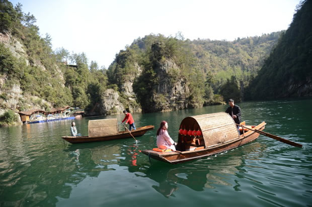 “在高峽平湖中,我們看到了張家界山水的純凈,也感受了這里人文的多彩!币慌鷣碜蕴﹪娜A裔游客當(dāng)天游覽景區(qū)后開心地說。在他們眼中,寶峰湖的春天風(fēng)景獨好,四周山巒山花競放,五顏六色絢麗無比,就連湖面倒影也十分迷人。而導(dǎo)游員熱情洋溢的講解和山歌船飛出的原生態(tài)民歌,以及烏篷船上身著民族服裝的阿哥阿妹,都是他們張家界之旅不容錯過的人文風(fēng)景。